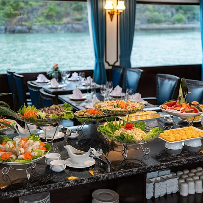 - Ưu điểm: Thực đơn đa dạng, chất lượng món ăn tốt và không gian ấm cúng, thân thiện, thích hợp cho bữa tiệc tất niên trên du thuyền 30–50 khách.
